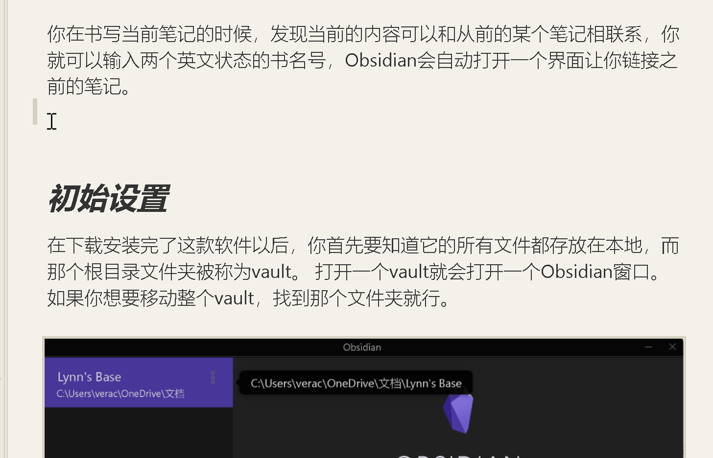 在下载安装完了这款软件以后,你首先要知道它的所有文件都存放在本地,而那个根目录文件夹被称为vault。 打开一个vault就会打开一个Obsidian窗口。如果你想要移动整个vault,找到那个文件夹就行。
