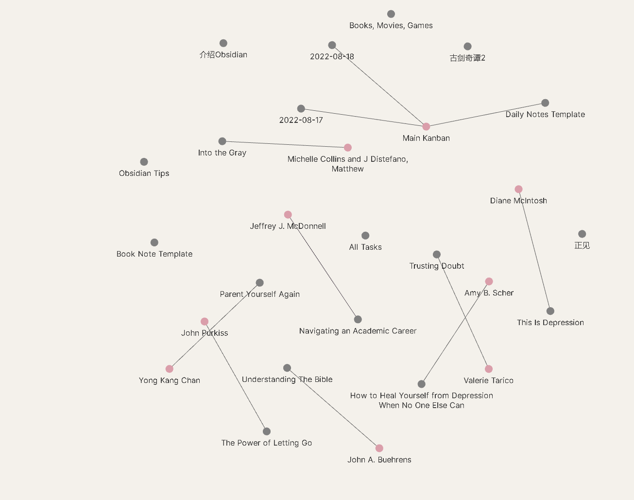 文本之间的联系可以通过所谓的graph view来图像化。我自己是不太用到这个功能……但是很多人好像很喜欢